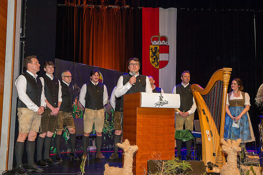 Den musikalischen Auftakt machte das Musikum Zell am See, gefolgt von der Heimatgruppe D’Hundstoana und den kraftvollen Klängen der Pinzgauer Jagdhornbläser. Mit dem feierlichen Einzug der Fahnenträger und den anschließenden Ansprachen bekam der Ball seinen würdigen Rahmen. Danach sorgte erneut die Heimatgruppe D’Hundstoana für begeisterte Stimmung, bevor Schnopsidee und First Choice Music Euch schwungvoll durch die Ballnacht begleiteten. Zu den Ehrengästen zählten unter anderem Landeshauptfrau Mag. Karoline Edtstadler, Bürgermeister Andreas Wimmreuter, Landesjägermeister-Stellvertreter Dr. Christian Schoiber, Landesrat Maximilian Aigner, Landesjägermeister a. D. Komm.-Rat Josef Eder sowie der Obmann des Salzburger Jagdschutzverbandes Christoph Burgstaller.