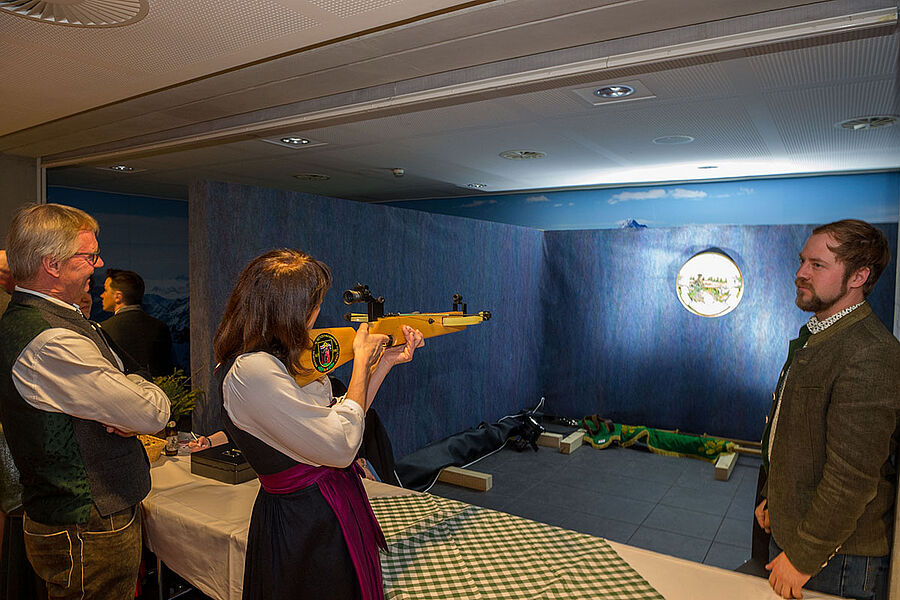 Neben Musik und Tanz wartete auch heuer wieder ein besonderes Erlebnis auf Euch: Schießkino und Ehrenscheibe wurden den ganzen Abend über hervorragend angenommen - von Jägern wie auch von Nichtjägern. Zielen, ausprobieren, mitfiebern, die Begeisterung war überall spürbar.